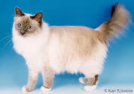 Il Tempio di Lao-Tsun fu costruito in Asia per il culto della dea Tsun-Kyan-Kse. Era una dea dorata con occhi blu zaffiro. Mun-Ha, uno dei sacerdoti del tempio, si inginocchiava davanti alla statua della dea con accanto il gatto bianco del tempio di nome Sinh. Una notte, dei predoni irruppero nel tempio mentre Mun-Ha stava adorando e lo uccisero. Mentre Mun-Ha stava morendo, Sinh posò i piedi su Mun-Ha e si rivolse alla dea. Il suo corpo passò immediatamente dal bianco all'oro e i suoi occhi divennero blu, proprio come quelli della dea. Le sue zampe divennero marroni, ma dove i suoi piedi toccavano il suo padrone, rimasero bianchi, simbolo di purezza. Anche tutti gli altri gatti dentro e intorno al tempio cambiarono in questo modo. Sinh rimase con il suo padrone per i successivi sette giorni, quando anche lui morì, e Sinh portò l'anima di Mun-Ha in paradiso. Ancora oggi, si crede che ogni volta che uno dei gatti sacri del tempio muore, l'anima di un sacerdote accompagni l'anima del gatto in paradiso.