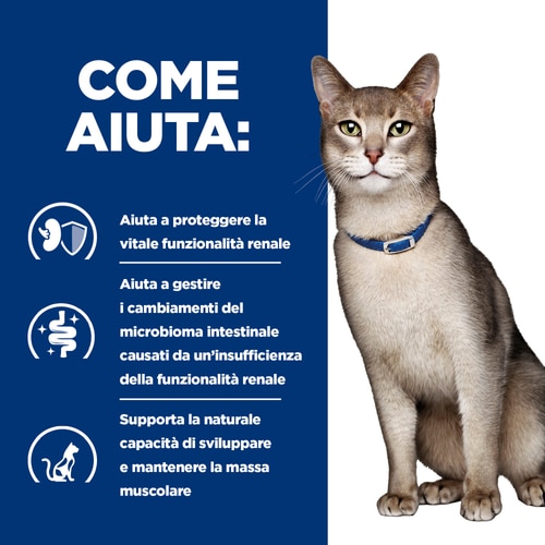 Nutrizionisti e veterinari Hill's hanno sviluppato la nutrizione clinica Hill's Prescription Diet k/d con ActivBiome+ Kidney Defense, una miscela brevettata di prebiotici che ha dimostrato di nutrire il microbioma intestinale per aiutare a sostenere la funzione renale. Prescription Diet k/d è disponibile in diverse forme e gusti di umido per attirare anche i pet più esigenti.